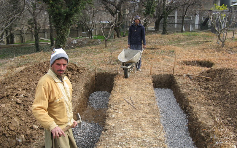 First ground broken. My friend here won't let me help digging, presumably so as not to dishonour his guest. But I refused to let him refuse my additional digging services.